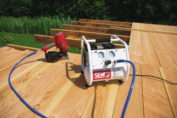 De draagbare, compacte en krachtige SENCO AC10304 compressor is de ideale olievrije compressor met een laag geluidsniveau voor dakonderbouw, asfaltkarton en gevelbekledingen. Door het verminderde geluidsniveau kunt u deze compressor direct op de plaats van gebruik plaatsen!